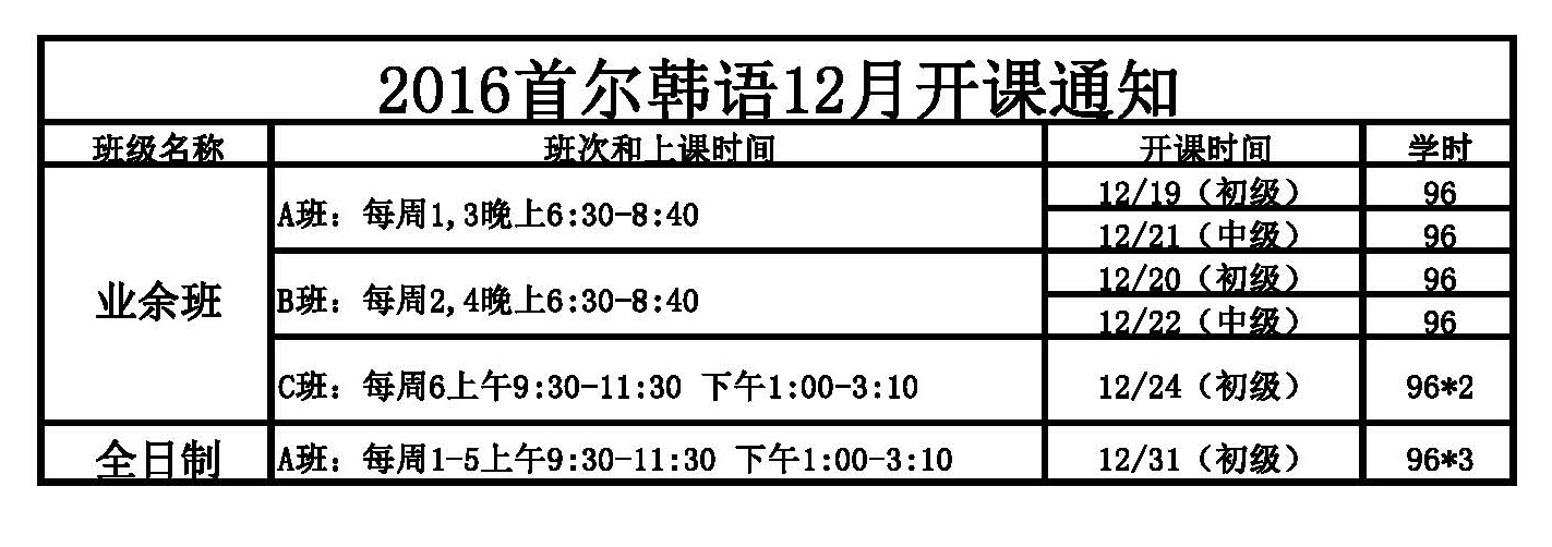 2016年12月南京首尔韩语开课